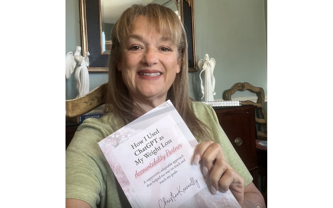So, here’s the quick version: I wrote a book. It’s called How I Used ChatGPT as My Weight Loss Accountability Partner, and it’s about how after hitting a plateau during my weight loss journey, I reached my 100-pound goal using an unconventional method like AI to be my accountability partner. I published it last July, and relaunched it this January, with this stunning new cover that my daughter helped me create.